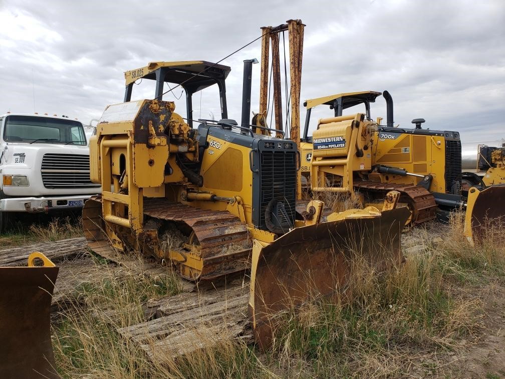 2007 John Deere 650J with Midwestern M520C side boom, 6 way dozer blade, 30” pads, Braden gearmatic winch, drawbar, hydraulic counterweight, Located in North Dakota