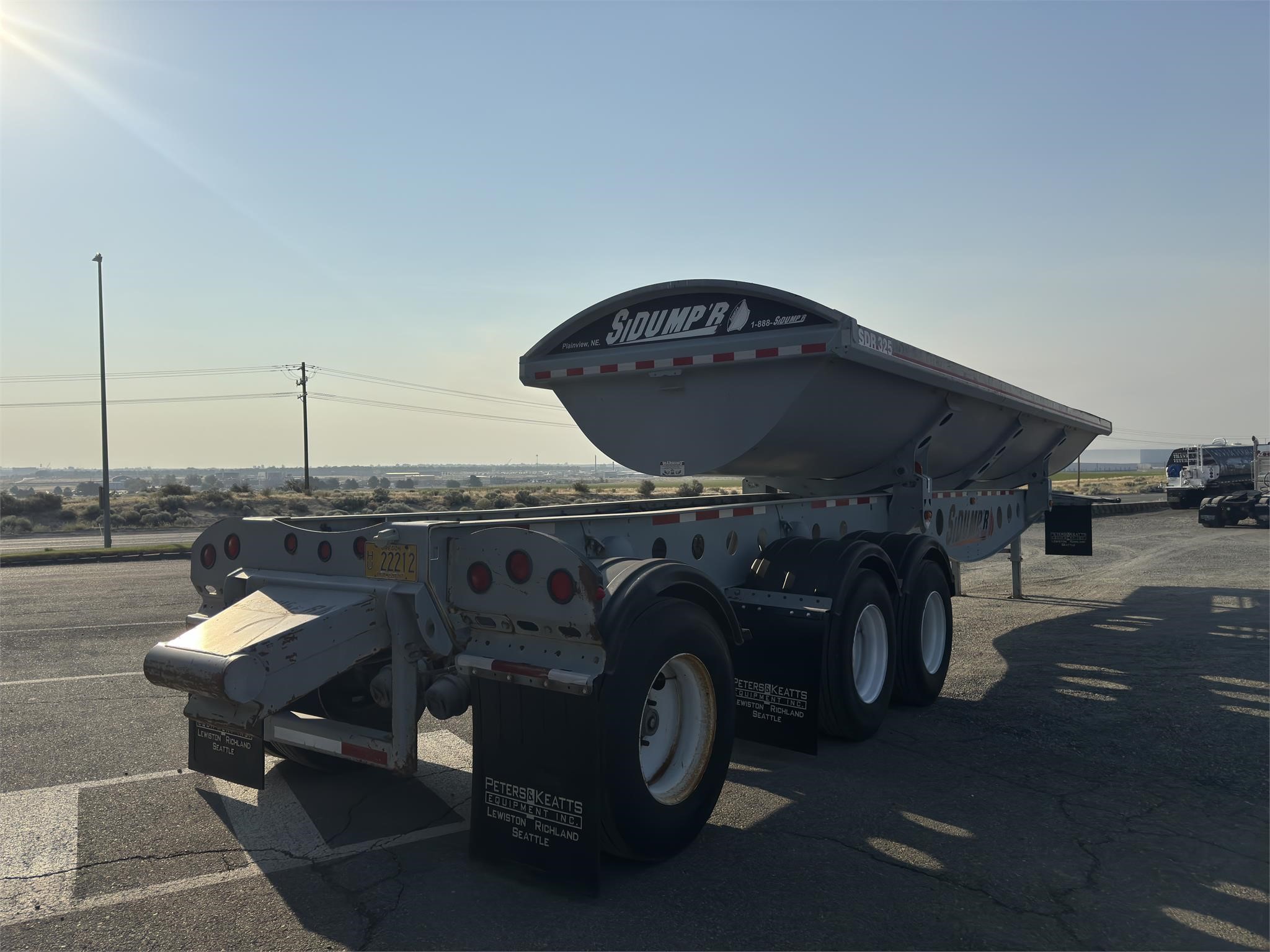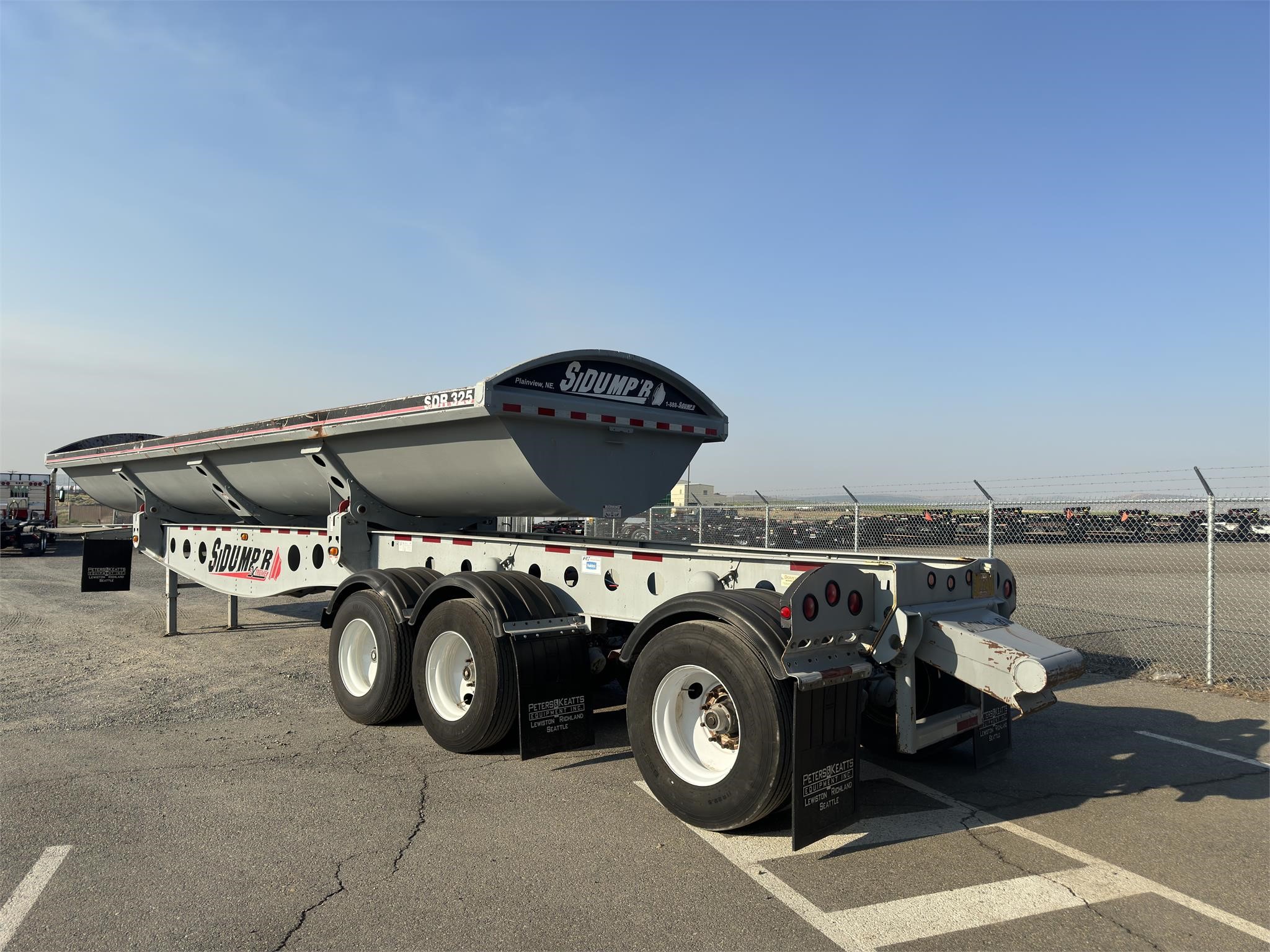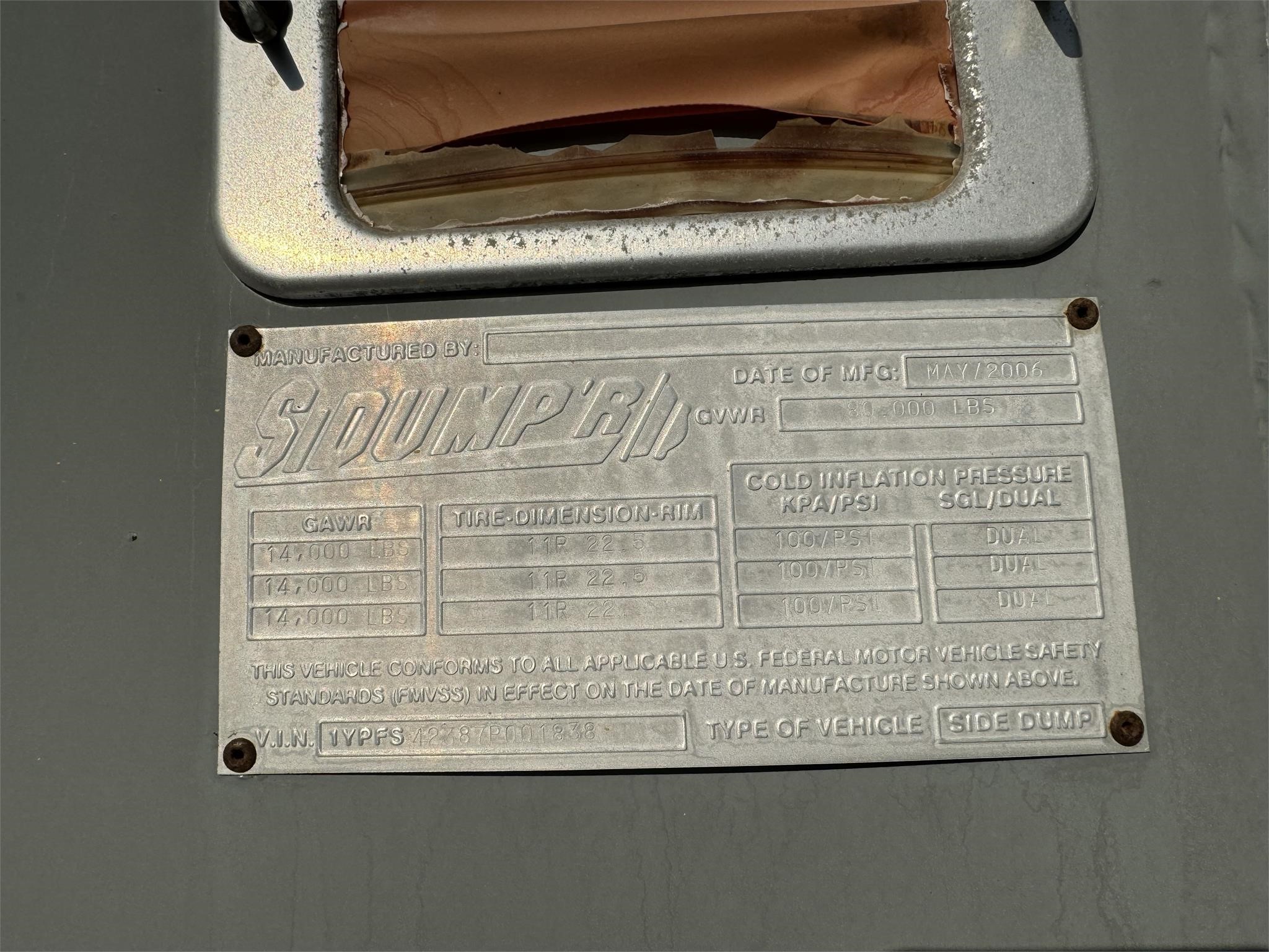 2007 Sidump’r, 3 axle, Drum brakes, Air lift 3rd, 11R22.5 Tires, 80,000 lbs GVW, 48’ frame, 36’ tub, 49” spacing between 1&2, 87” spacing between 2&3, 11R 22.5 duals, Brand new drum brakes