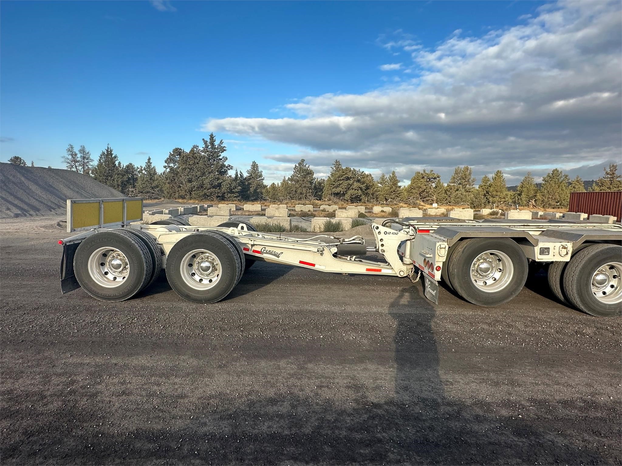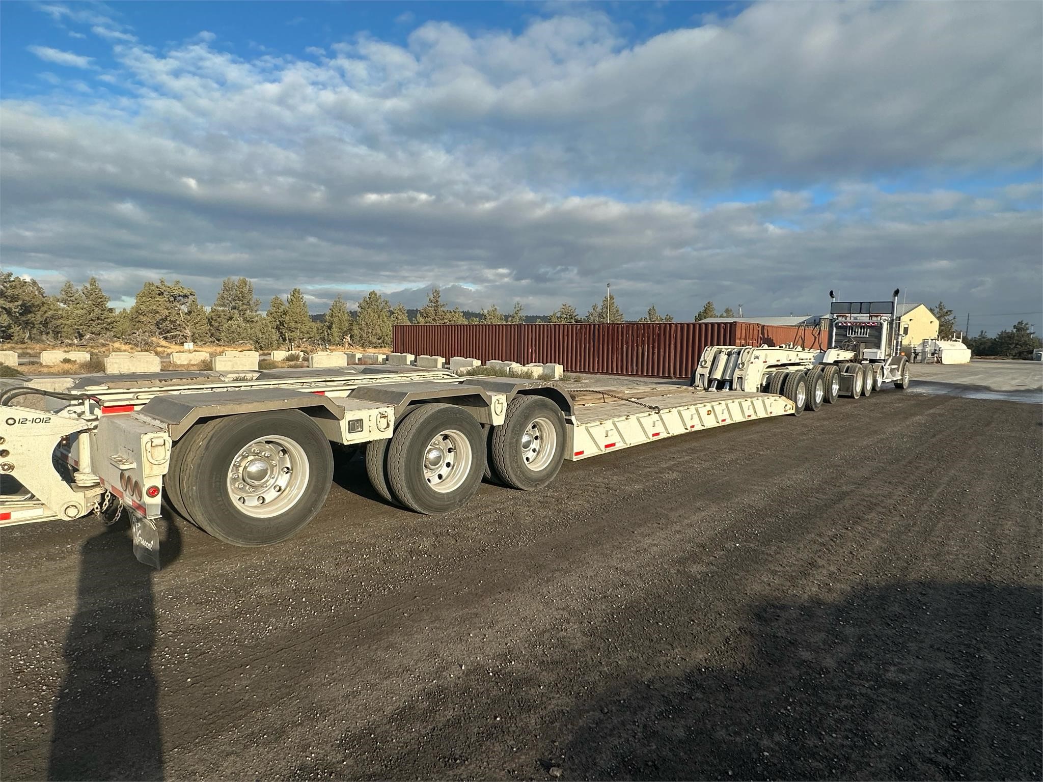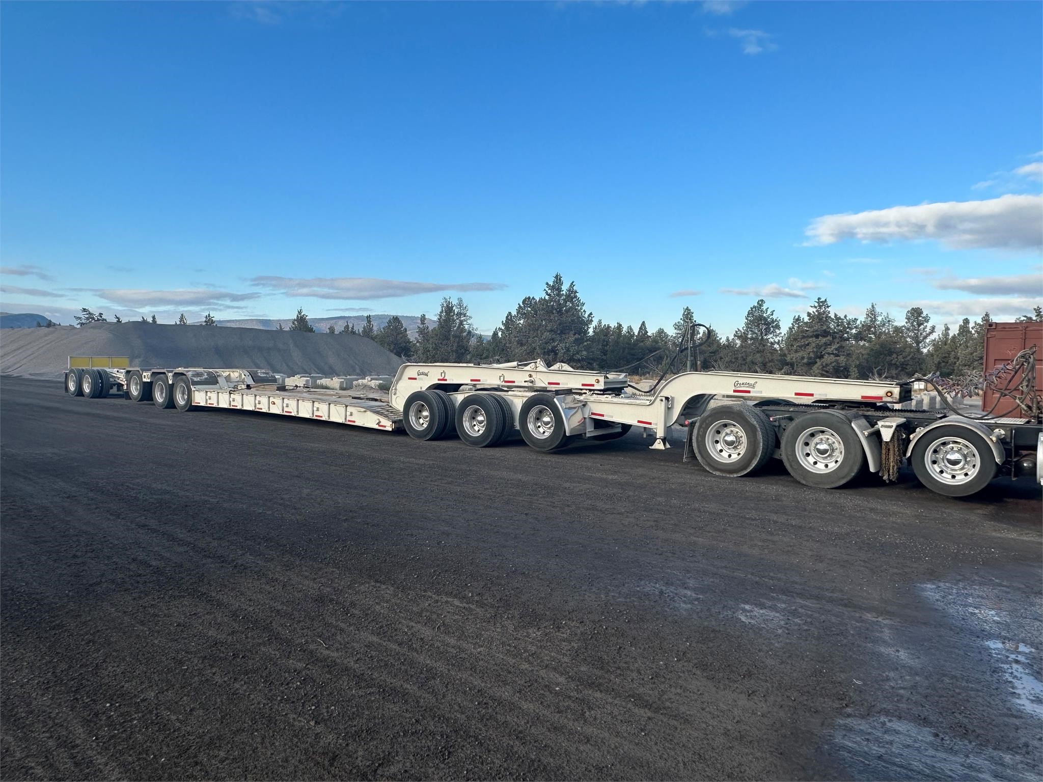 2016 General 80 ton trailer, 24’ by 9’ wide flush deck, flip over gooseneck extension, wet kit operated gooseneck, 2016 General Tandem axle nitrogen booster, 2018 General Tri axle jeep with air lift 1st axle,