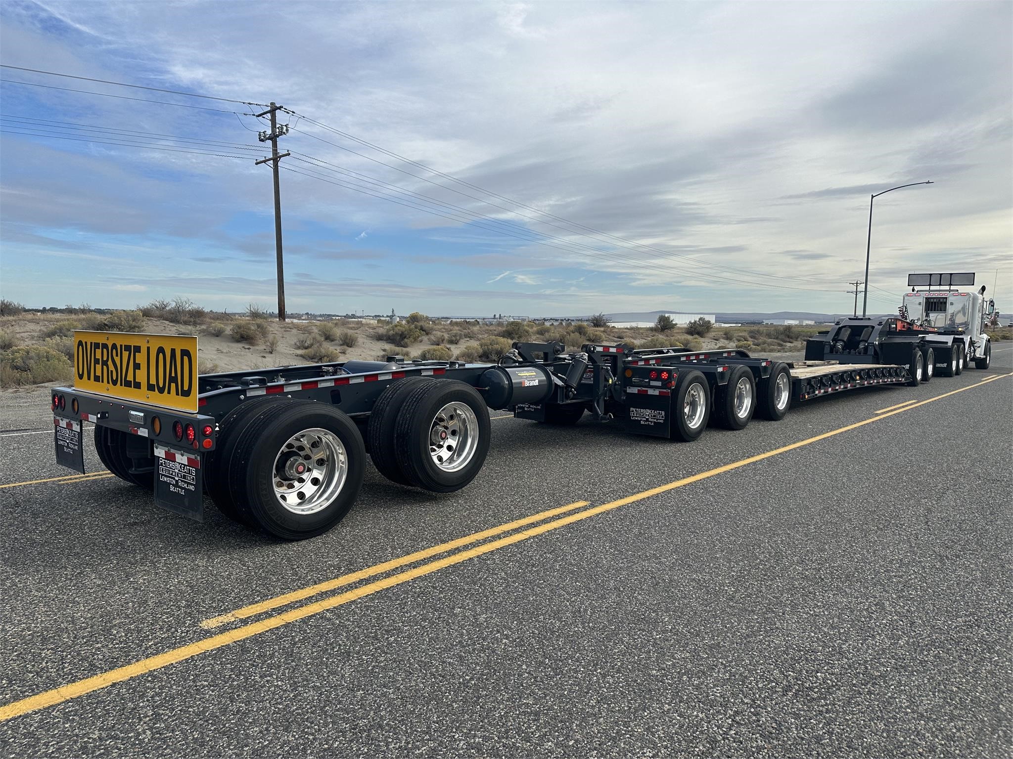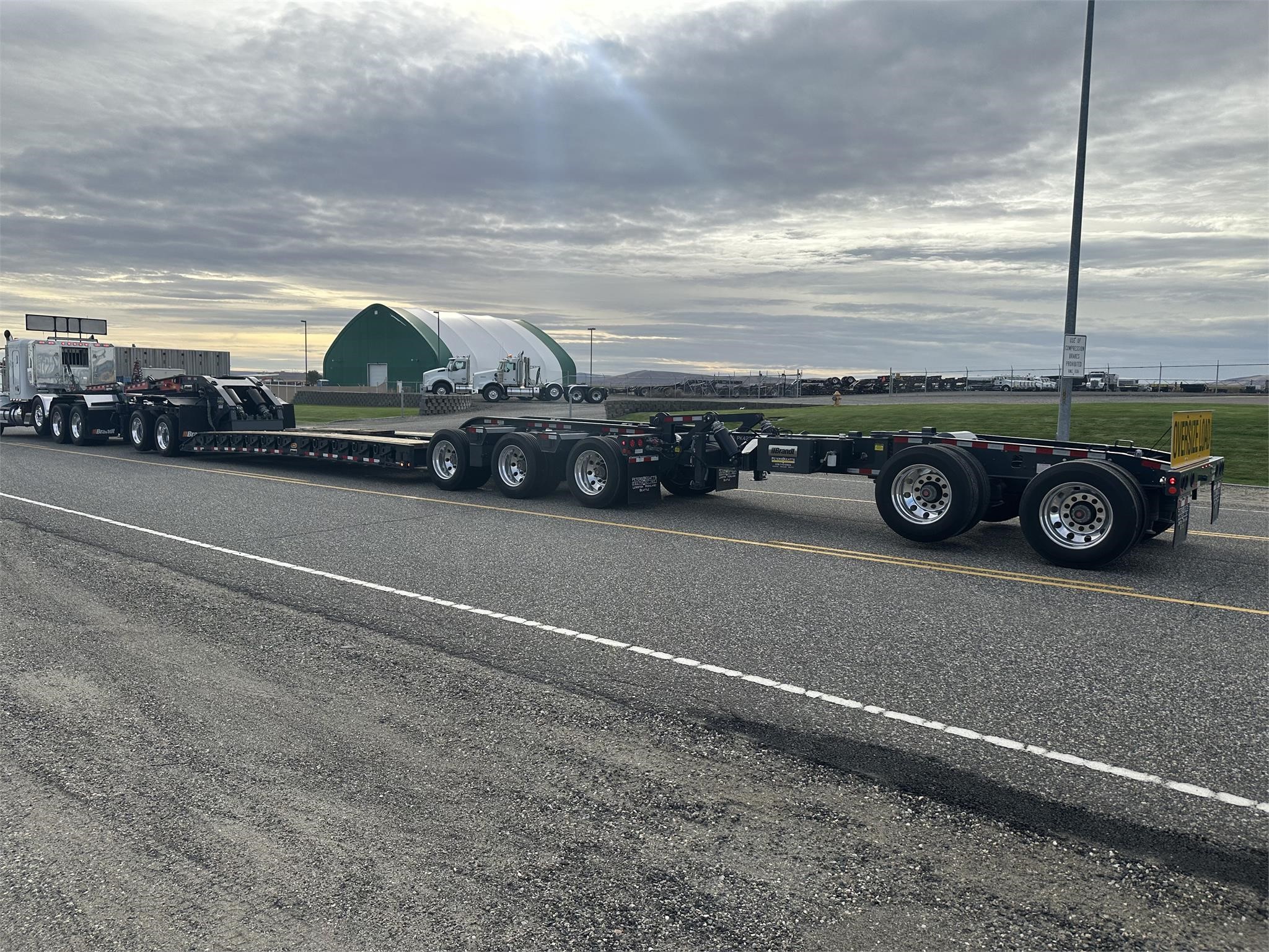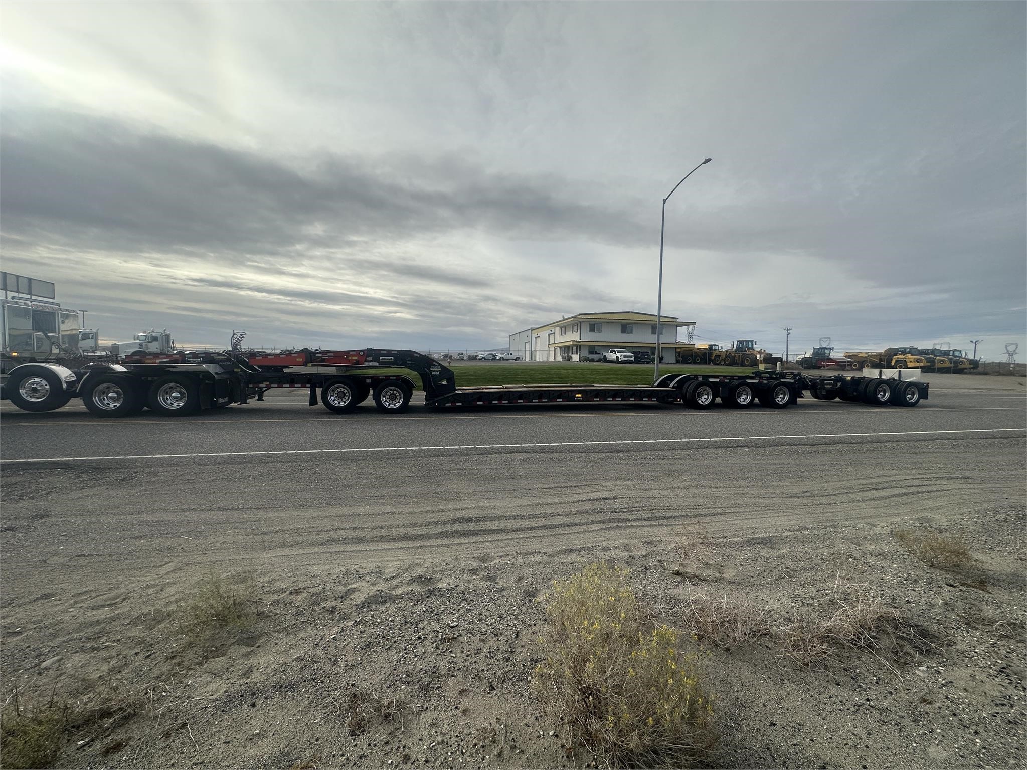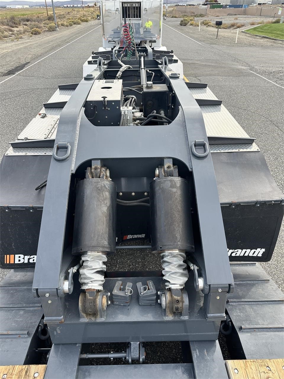 USED H650 65 ton RGN Lowboy, Flush Deck, 2+3+2 setup, 8’6″x24′ DRUM Brakes, Liftable 3rd Axle, – Gray