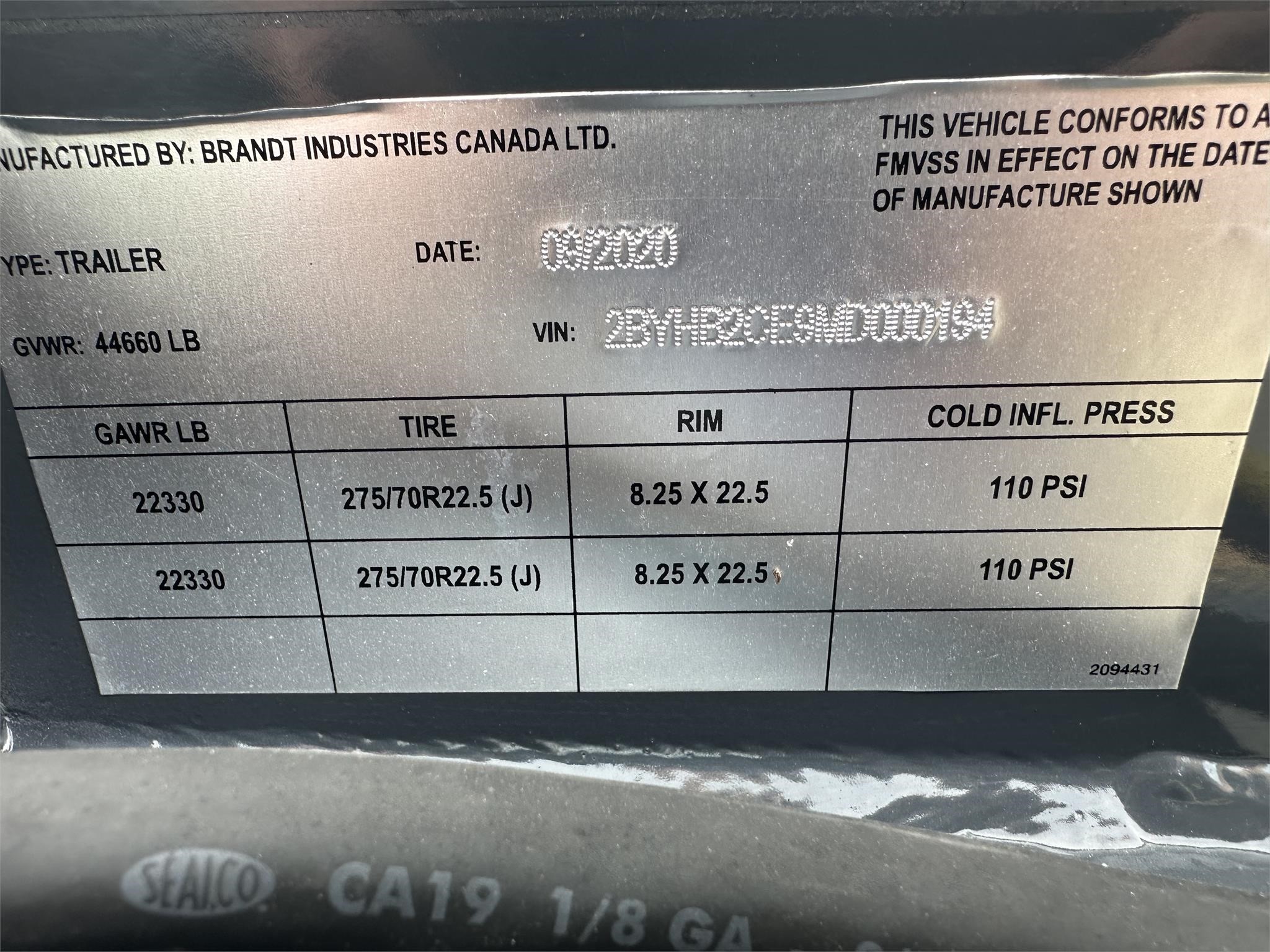 2021 BRANDT H650 - Sold